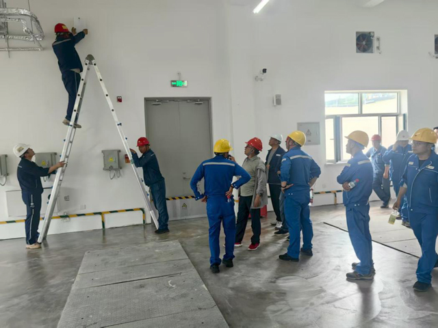 图为建设局工作人员会同项目单位,在项目现场对消防设施进行验收