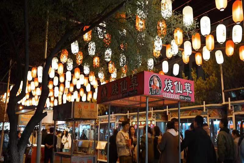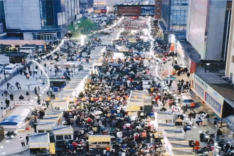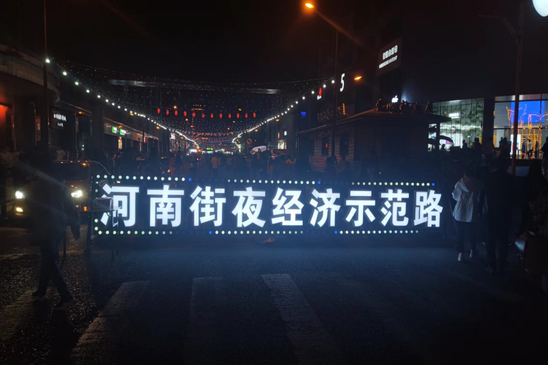 一是传统烟火夜市人声鼎沸。河南街不夜街、大东门广场夜市、金地里里敢集艺术街区3.0、万达广场后备箱市集、林荫路夜市、火车站东广场夜市等9个夜市在五一期间火热开市,经营业户共计约450户,日均客流量达7万人次,人气异常火爆。其中:河南街不夜街仅首日开市客流量就达3万人次,百年老街人潮涌动,店铺里张灯结彩,特色美食香飘十里,歌舞表演聚拢人气,全方位释放“夜经济”活力;大东门广场夜市人气火爆,熙熙攘攘的人群和食物的香气形成了人间独有的烟火气;金地里里“金夜·有点吉市”人流如织,“傣迪电音节”燃爆视觉秀,以潮流轻快的视觉风格,打造美食与音乐结合的夜间潮流市集。