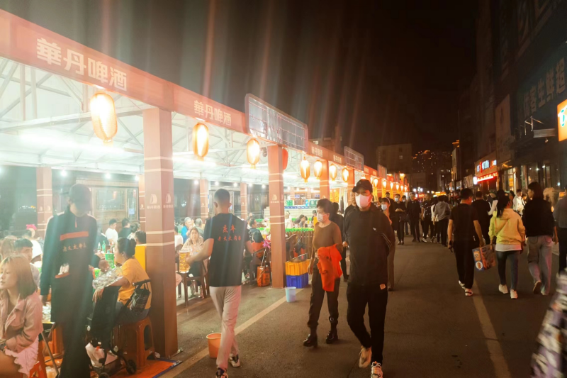 二是雪花·华丹主题街区灯火璀璨。五一期间已搭建完成上海路、三亚路、宜山路、厦门东街、林苑路5条雪花·华丹主题街区,共包含近90家经营业户,日客流量约2400人次,真正让街区人气“旺”起来,激情“燃”起来,城市 “亮”起来。