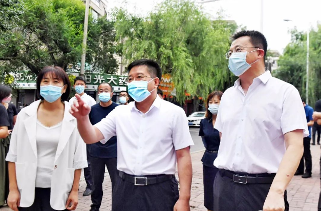 图为市委副书记、代市长王吉(右二)在昌邑区新昌北小区检查城市精细化管理情况