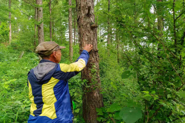 图为工作人员挂置赤眼蜂卡对落叶松毛虫进行防治