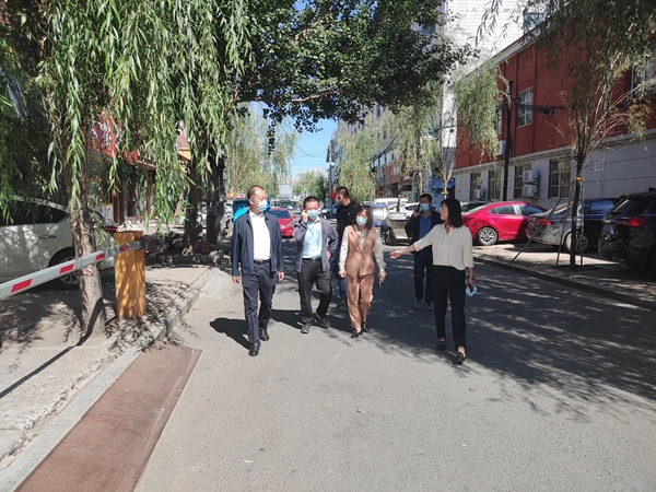 图为昌邑区委书记刘革锋(左一)实地督导检查巩固创城成果“集中攻坚”行动进展情况