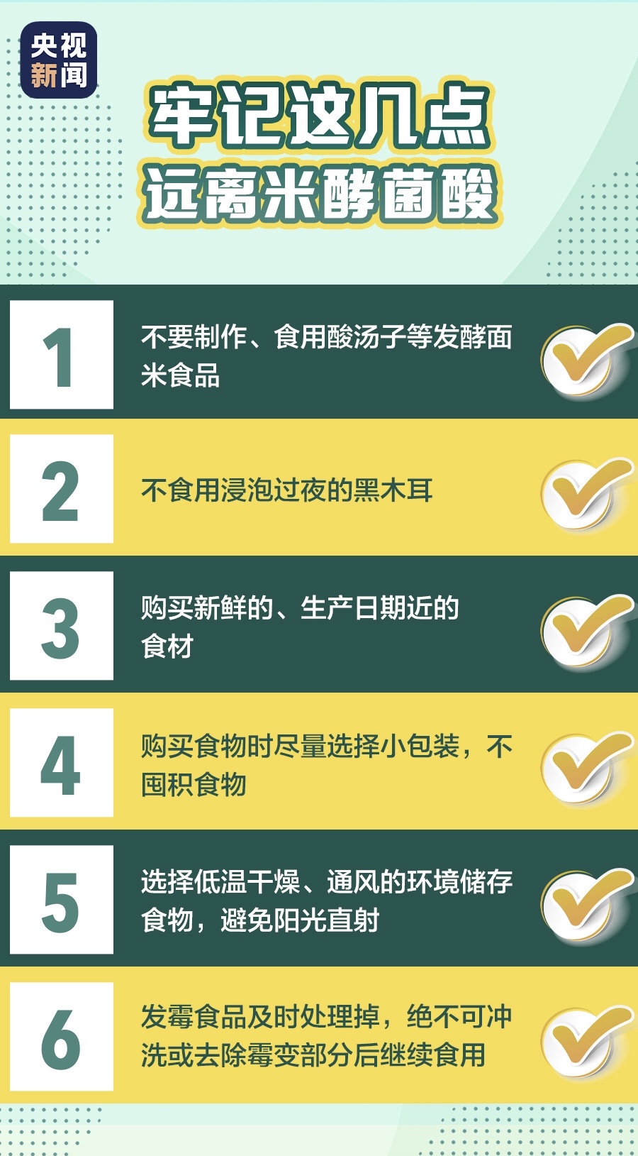 2020年10月5日黑龙江鸡东县某家庭进行家庭聚餐,因食用酸汤子引发食物中毒,中毒者9人经多日救治无效,不幸离世。这场家庭悲剧的罪魁祸首就是被椰毒假单胞菌污染的酸汤子,该菌能产生致命的米酵菌酸,高温煮沸不能破坏毒性,中毒后没有特效救治药物,病死率达50%以上。为保证生命安全,最好的措施就是不制作、不食用酵米面类食品。