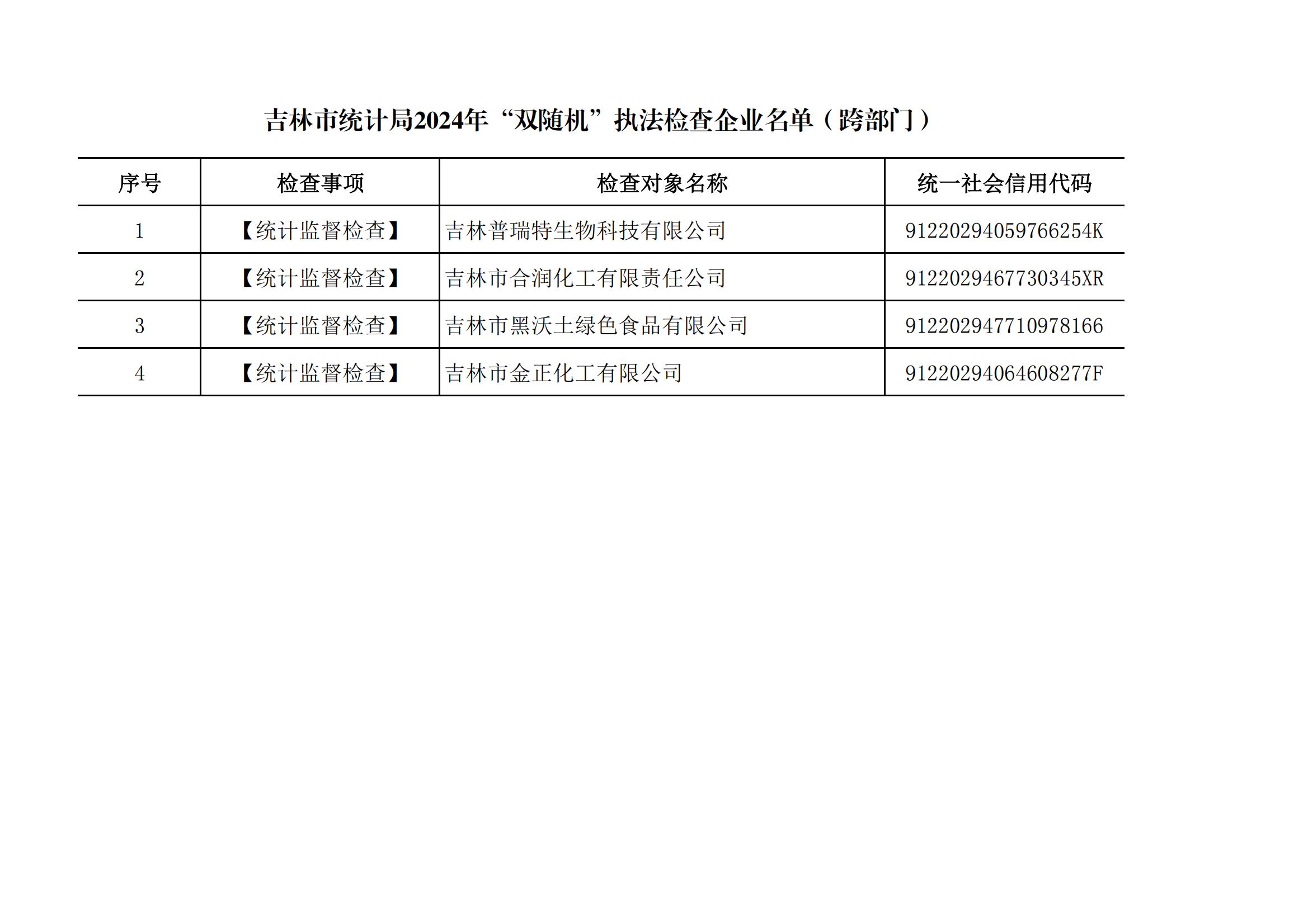 吉林市统计局2024年“双随机”执法检查企业名单(跨部门)