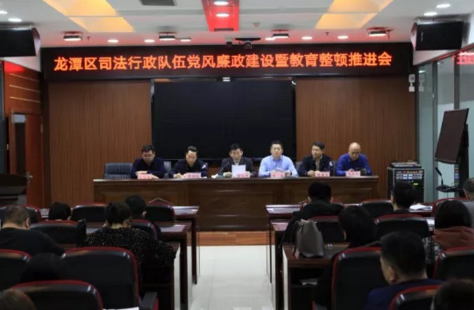 图为龙潭区司法局召开司法行政系统党风廉政建设暨教育整顿推进会