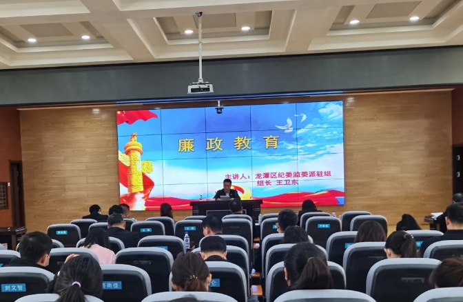 2021年3月31日,吉林龙潭区人民法院召开政法队伍教育整顿活动全院廉政教育讲座,本次讲座由龙潭区纪委监委派驻组组长王卫东作廉政教育讲话并观看警示教育宣传片。反思党员干部腐败案件的惨痛教训、引为镜鉴,警钟长鸣。龙潭区人民法院领导班子成员、全体法官干警参加讲座。